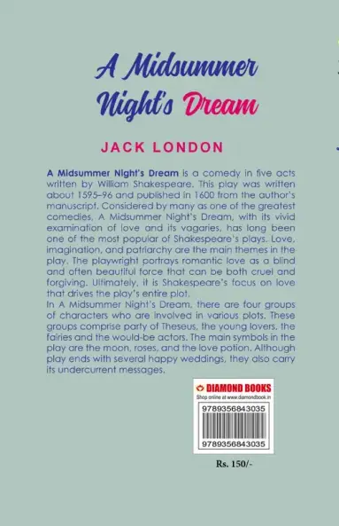 A Midsummer Nights Dream is a comedy in five acts written by William Shakespeare. This play was written about 159596 and published in 1600 from the authors manuscript. Considered by many as one of the greatest comedies A Midsummer Nights Dream with its vivid examination of love and its vagaries has long been one of the most popular of Shakespeares plays. Love imagination and patriarchy are the main themes in the play. The playwright portrays romantic love as a blind and often beautiful force that can be both cruel and forgiving. Ultimately it is Shakespeares focus on love that drives the plays entire plot.In A Midsummer Nights Dream there are four groups of characters who are involved in various plots. These groups comprise party of Theseus the young lovers the fairies and the would-be actors. The main symbols in the play are the moon roses and the love potion. Although play ends with several happy weddings they also carry its undercurrent messages.